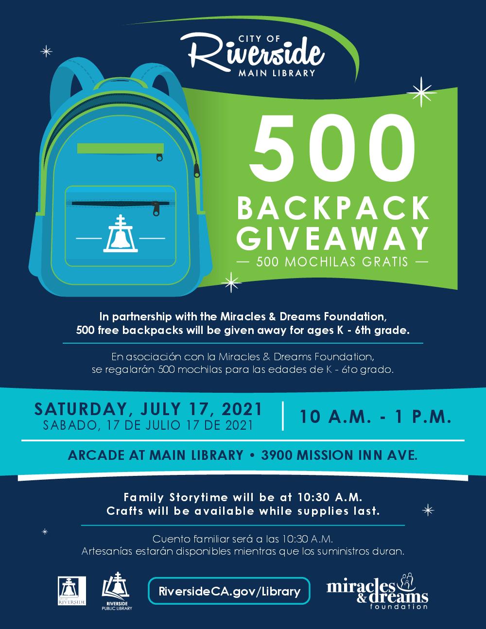 Riverside Main Library Back to School Backpack Giveaway